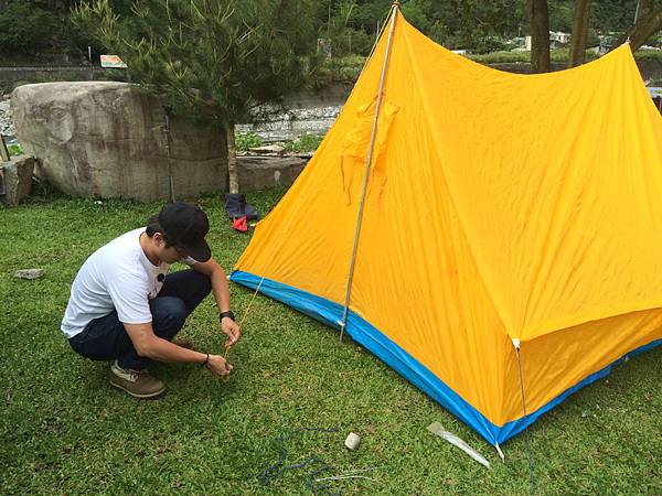午後的山區,在豔陽高照下,彷彿潺潺溪流沁涼的泉水更引人入勝。來到預定的營區,趁著微微的風輕拂衣袖的此時此刻,趕緊搭建起今晚即將入住的營帳,集眾人之力,很快地我們所有人一起就完成了,這看似不那麼容易,但卻非常重要的小事情。