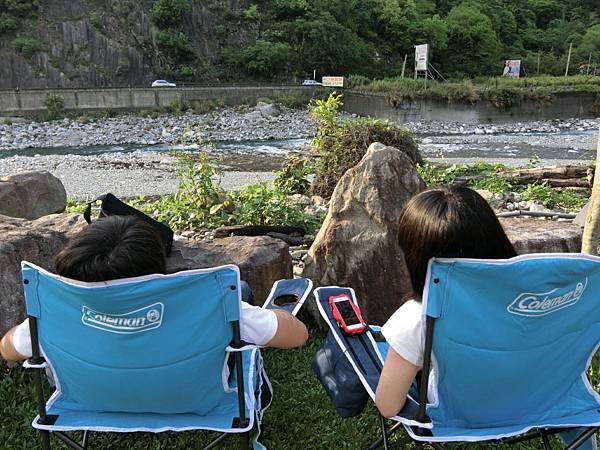 準備好了今夜一宿的小小房子後,這開闊的山間讓人沈迷、讓人陶醉、讓人有恍若置身桃花源的錯覺,當好朋友忍不住到溪邊戲水的時候,強哥與小豆皮待在營地,聽著輕快活潑的音樂、享受這片刻偷閒的寧靜,相視而笑地無需言語。
